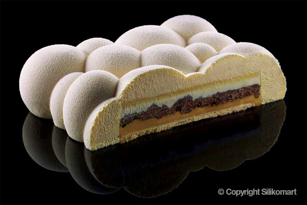 Symbol of changes and movement, the cloud always recalls to something soft, light and gentle. Cloud, and its unique design, gets inspiration from all this. CLOUD, the silicone mould by Silikomart Professional, with a volume of 1600 ml is suitable for both baking and blast chilling, guaranteeing flawless results.