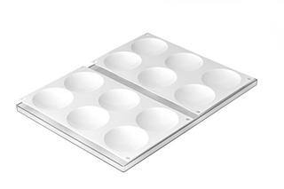Set 2 pz Size:Ø80 h 20 mm + vassoio 30x40 cm Volume: 54 x 6 = 324 ml