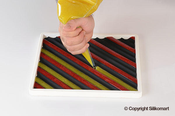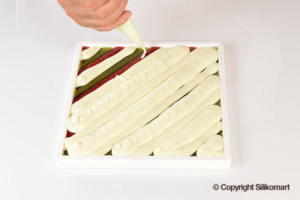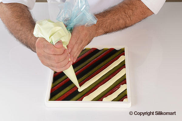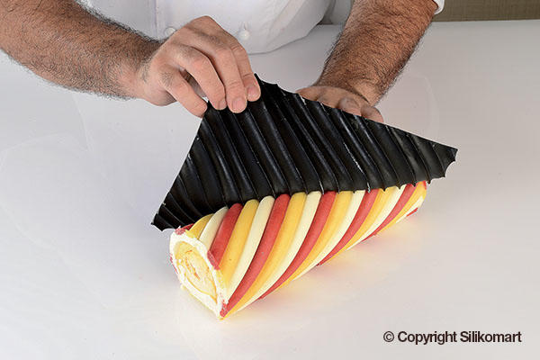 Silikomart Professional has been chosen by the Italian Team to accurately design the kit to reproduce painstakingly the fruit entremet winner of the world’s cup. Kit Ali di Fata is composed by 7 items: 3 combinable silicone moulds to make a surprising effect of inserts with floral theme. 2. A silicone mat characterized by a wavy weave and a silicone base to reproduce multi taste and multicolour strips. The same base can be used to make the sponge cake. 3. Two thermoform items that make easy the assemble of the entremet. The magic team composed by Fabrizio Donatone, Francesco Boccia e Emmanuele Forcone, after months of hard work and training, won the golden medal at the Pastry World Cup 2015 in Lyon. After the competition the Italian Team decided to entrust Silikomart Professional the creation of a kit to accurately reproduce the fruit entremet winner of the world’s cup.