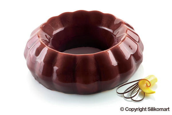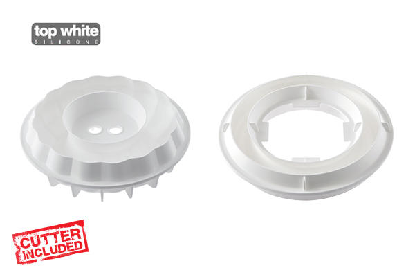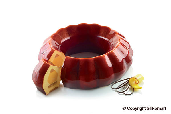 The Kit Diamond Crown is composed by 3 elements: one silicone mould to make a portionable preparation (2000 ml volume), one silicone insert to make a dessert with a unique effect when cut and one functioning plastic cutter to make original inserts or sponge cake and brittle bases.