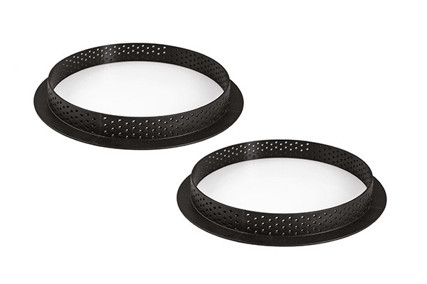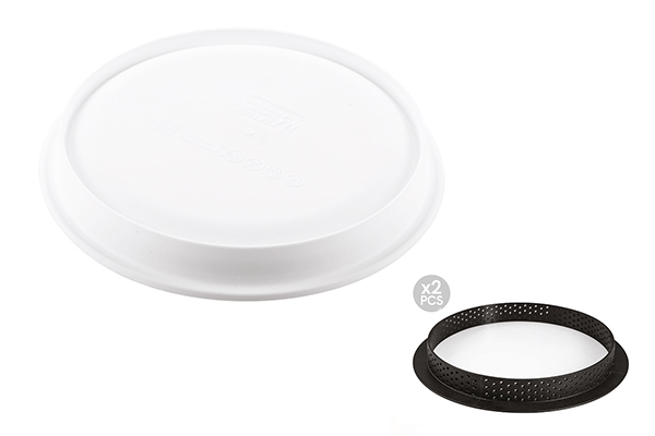 Inspired by the exclusive desserts “Tarte au Chocolat Grand Cru” and "Tarte Citron Vert & Shiso Frais" signed by the pastry chef Yann Couvreur, this precious tart will allow you to amaze with his elegance and harmony. The kit is composed by two elements: two rings with a 150 mm diameter in thermoplastic composite crush-proof material suitable for baking and creating base and two silicone moulds with a 147 mm diameter each to make a mousse or a cream to lay over the shortcrusts. The rings are non-stick and stainless, they allow an homogenous baking and they are characterized by a high thermal stability.