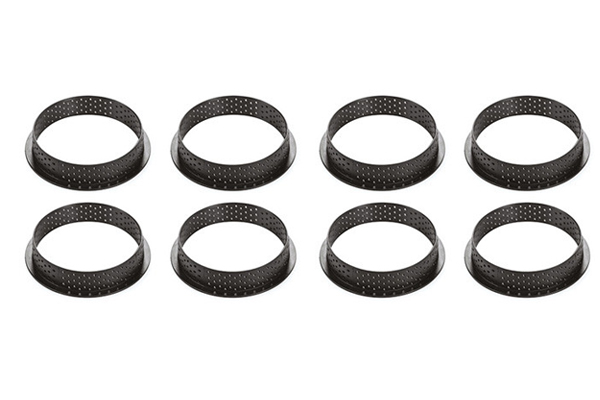Inspired by the exclusive desserts “Tarte au Chocolat Grand Cru” and "Tarte Citron Vert & Shiso Frais" signed by the pastry chef Yann Couvreur, this precious tart will let you amaze with her elegance and harmony. The kit is composed by two elements: 8 rings with a 70 mm diameter in thermoplastic composite crush-proof material suitable for baking and creating base and a silicone mould with a 64 mm diameter to make some mousses or creams to lay over the shortcrusts. The rings are non-stick and stainless, they allow an homogenous baking and they are characterized by a high thermal stability.