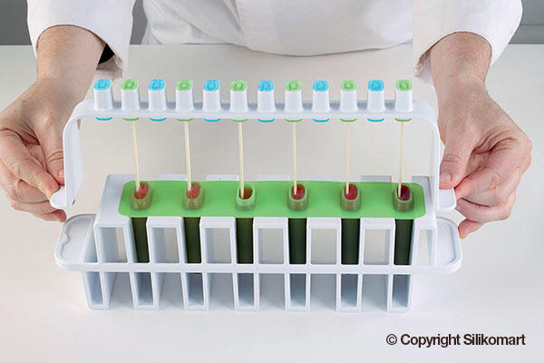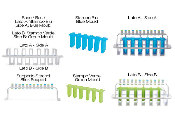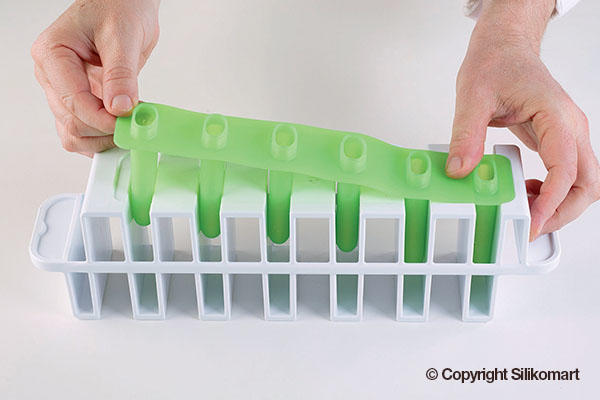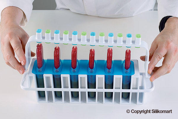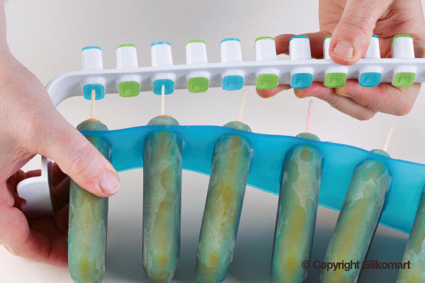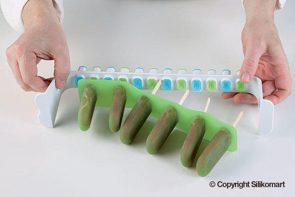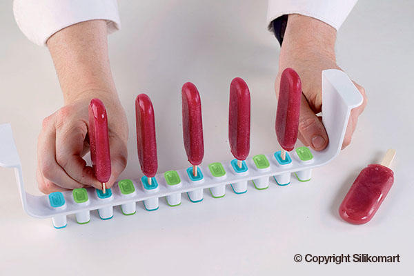 L'italiano is the innovative and functional kit to make ice creams and popsicles on stick as you have never done them before: DOUBLE-FLAVOURED! The stability of the plastic supports and the flexibility of the silicone moulds are perfectly combined in this kit guaranteeing a flawless result, easy unmoulding guaranteed till -60°C(-76 °F), lower production time and storage easiness.;Blue Mould