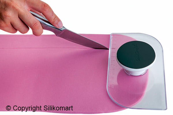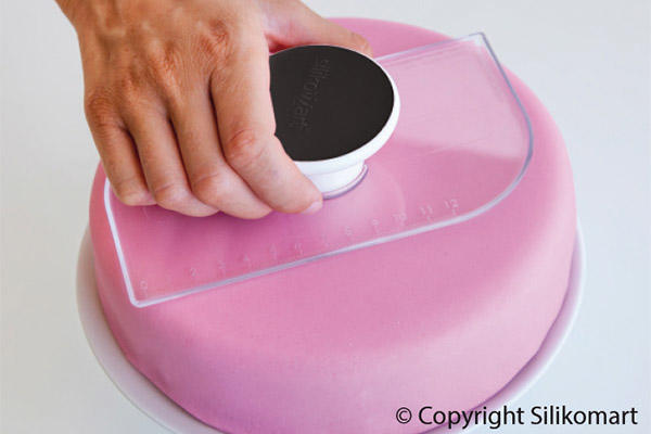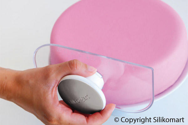 Policarbonate smoother that consists of an interchangeable ergonomic handle, with a silicone top and a transparent spatula that gives you a better control of the dough during the smoothing process. It is an essential tool to smooth the cake surface. it is provided with a ruler that allows you to measure or to draw lines on sugar paste, plastic chocolate, short pastry, etc.