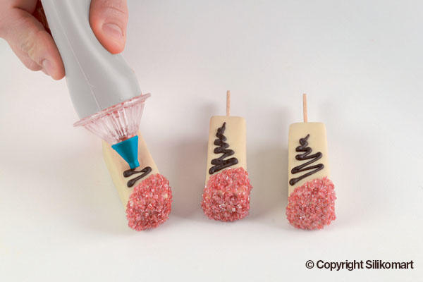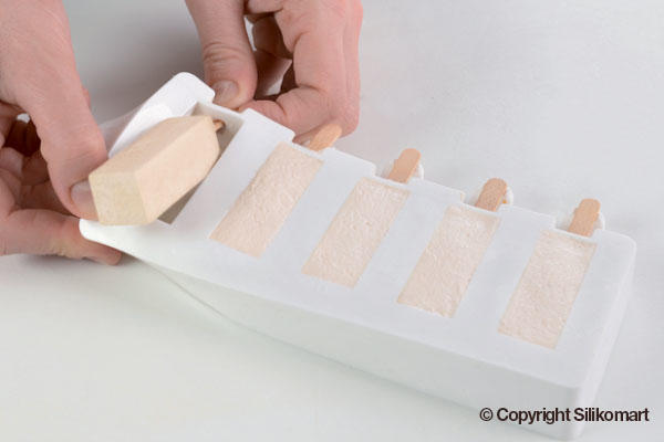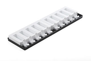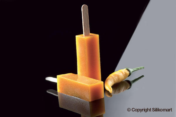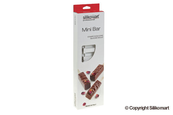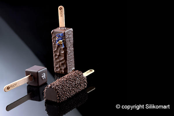 The perfect fusion between geometrical shapes and elegance generates the platinic silicone moulds Mini Kube, Mini Pick and Mini Bar, perfect to prepare refined individual portions shaped as cubes, half cylinders and rectangles. They are perfect to make greedy chocolates on stick, tasty mini ice-cream finger food and also one bites in savoury version. The moulds resist to temperatures going from -76°F to +446°F, allowing their use in the oven and in the blast chiller. The package is composed by two moulds to make Mini Sticks, one polycarbonate black tray 12X40 cm (0.47x1.57 inches) and 50 wood sticks. Set 2 pcs Size: 60 x 20 h 20 mm Vol: 24 ml x 10 = 240 ml + 50 Sticks