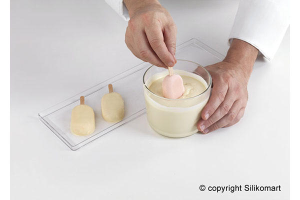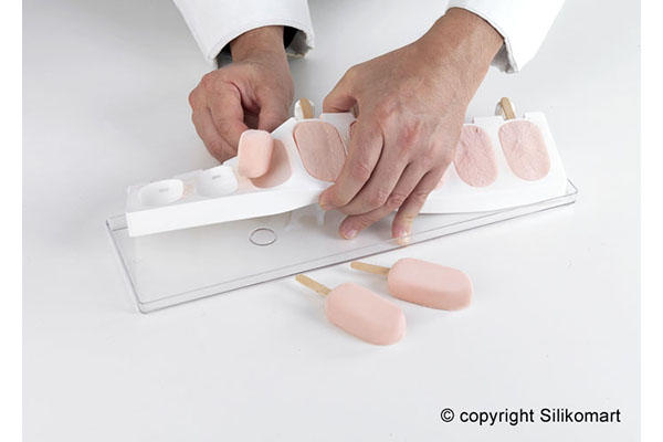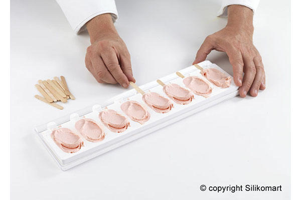 Mini Classic is perfect for those who want to make not only delicious ice creams but also sweet or savoury baked preparations on a stick. Handy and useful, Mini Classic is made of 100% safe food silicone. It is presented in a kit with sticks and a transparent polycarbonate tray designed both for preparation and display of the product.