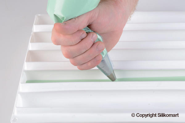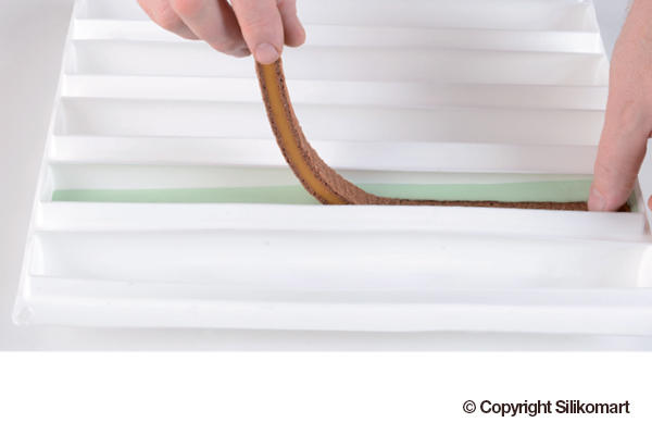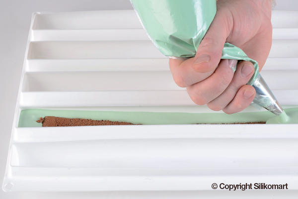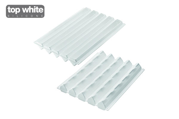 Conceived by Silikomart designers to meet your needs of a beautiful result in the window display as well as optimization of preparation, WAVE arrives in the world of ice cream and creative pastry with a new shape and a new concept. WAVE allows easily and quickly to make 5 little logs which can be combined each other or divided in smaller portions or monoportions, so that artisans can make creations which coincide, even in sizes, with their necessities. Made of food safe platinum silicone 100% Made in Italy and resistant to temperature ranges between -60°C and +230°C, WAVE is suitable both for blast chiller and oven.