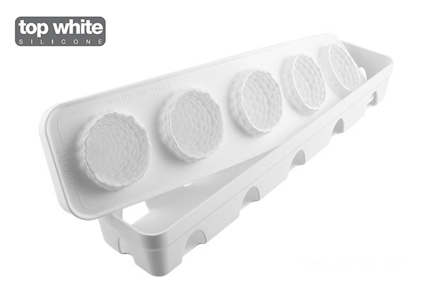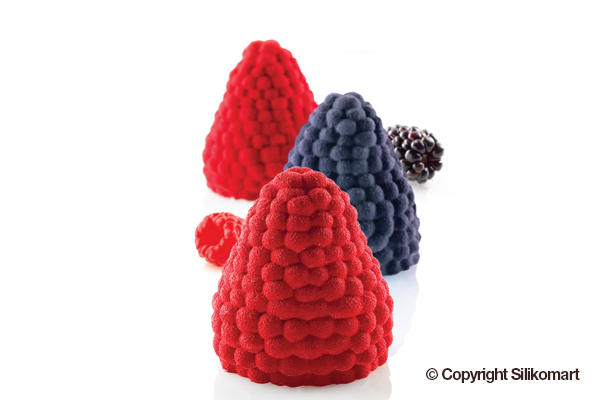 What do these forest chests hide? They seem to be just blackberries and raspberries but they may hold infinite taste combinations: fantasy is the only limit. Provided with 5 cavities (110 ml each) and equipped with the practical plastic support for a perfect result during preparation and blast chilling, MORA&LAMPONE110 is an exclusive mould by Silikomart Professional designed to re-create accurately the 3D shape of fruit.