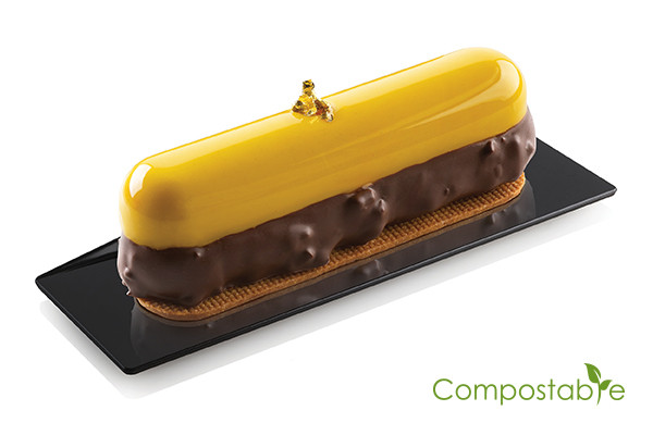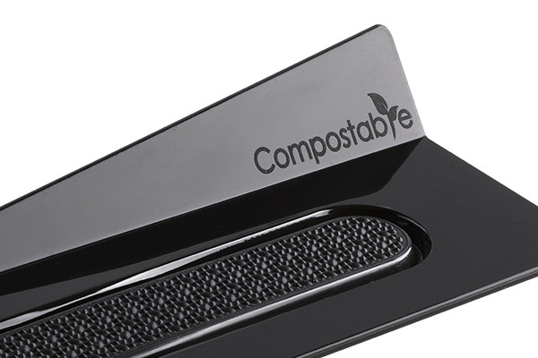 Elegant compostable trays perfect for displaying, storing and transporting your single portions thanks to an innovative non-slip central section and the practical lateral flap. The minimal design and the black colour of the trays highlights the aesthetics of the product for an elegant and refined glance. The compostable properties of the trays are designed for an easier disposal and a sustainable solution for our Planet.
