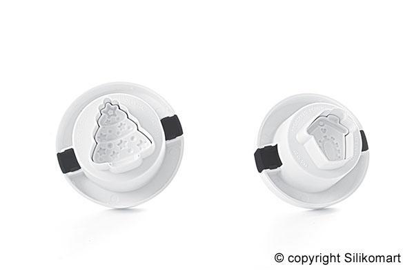 A set of two ejector cutters for pastry without metal parts. It allowsyou to create 3D designs in one operation. The pastry cutter allows youto impress directly on the rolled out pastry and it can be used withsugar paste, short pastry, marzipan and chocolate paste. size:Big Ø35mm Small Ø25mm