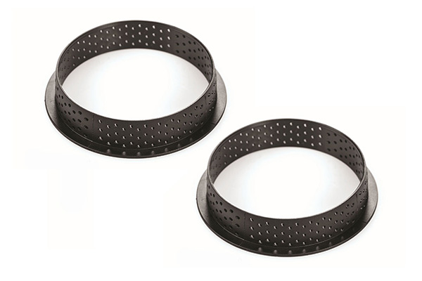 Tarte Rring Ø 150 by Silikomart Professional is composed by two rings of 150 mm diameter each in thermoplastic composite crush-proof material suitable for baking and that were developed to make a pie of 140 mm diameter. Rings are non-stick and stainless, allow an homogenous baking and they own a high thermal stability, realizing a traditionally impeccable pie.
