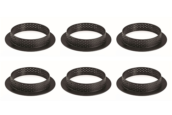 Tarte Ring Ø 80 by Silikomart Professional is composed by six rings of 80 mm diameter each in thermoplastic composite crush-proof material suitable for baking and that were developed to make a pie of 70 mm diameter. The rings are non-stick and stainless, allow an homogenous baking and they own a high thermal stability, realizing a traditionally impeccable pie.