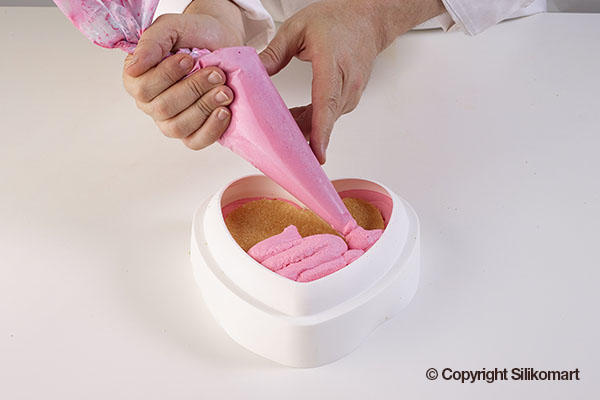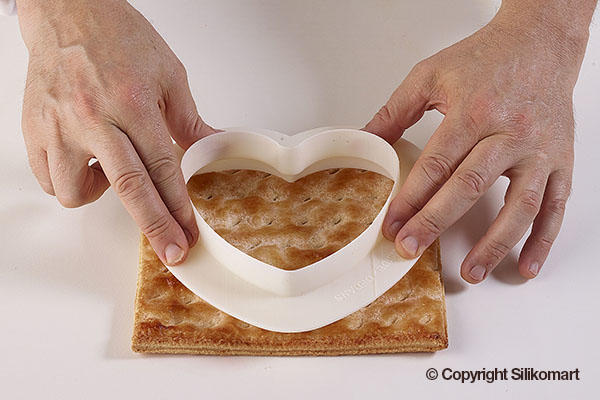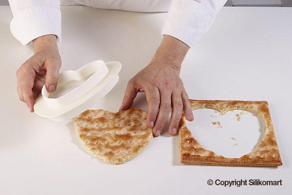 Designed for the most romantic occasions, TI AMO is the silicone mould by Silikomart Professional to make heart-shaped creations of 1 liter volume. It comes with a plastic cutter to make original inserts and/or supporting bases perfectly combinable with TI AMO shape. TI AMO is characterized by an extreme flexibility and versatility, guaranteeing perfect results both for semifreddos and baked creations.