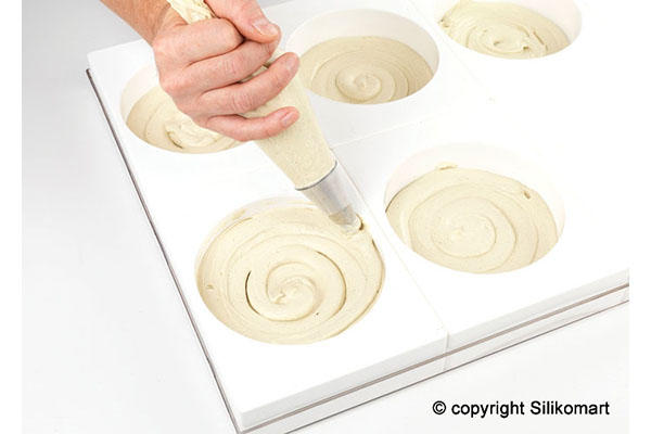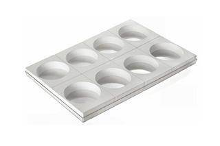 Line:Tortaflex Round Set: 8pz. + tray 60x40 cm Size: Ø 135 h 50 mm Volume: 8 x 705 ml