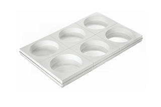 Line:Tortaflex Round Set: 6pz. + tray 60x40 cm Size: Ø 160 h 50 mm Volume: 6 x 1000 ml