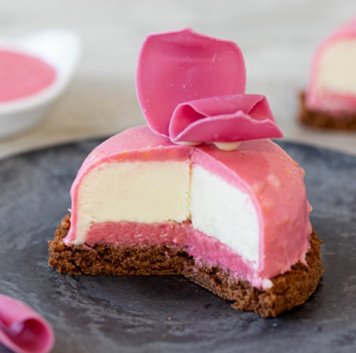 Ingrediente: Reno concerto - ciocolata negra, cu lapte si alba, Vigor Baking - praf de copt, JOYCOUVERTURE EXTRA CHOC WHITE, Delinoisette - mix zahar si alune de padure, Lilly - mix pentru bavarese, mousse, semifreddo, Joycream Frizzzi Pop Pink