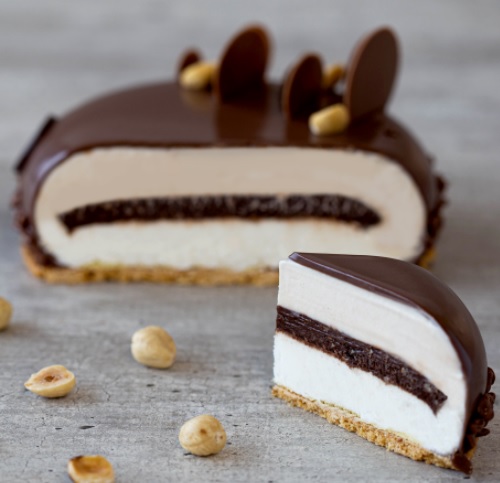 Ingrediente: Mirror - glazuri oglinda la cald si la rece, Tender dessert - mix semifreddo, JOYPASTE AMORENERO, Sinfonia nocciolato bianco - ciocolata alba cu alune, Joycream Frizzzi Pop Choc